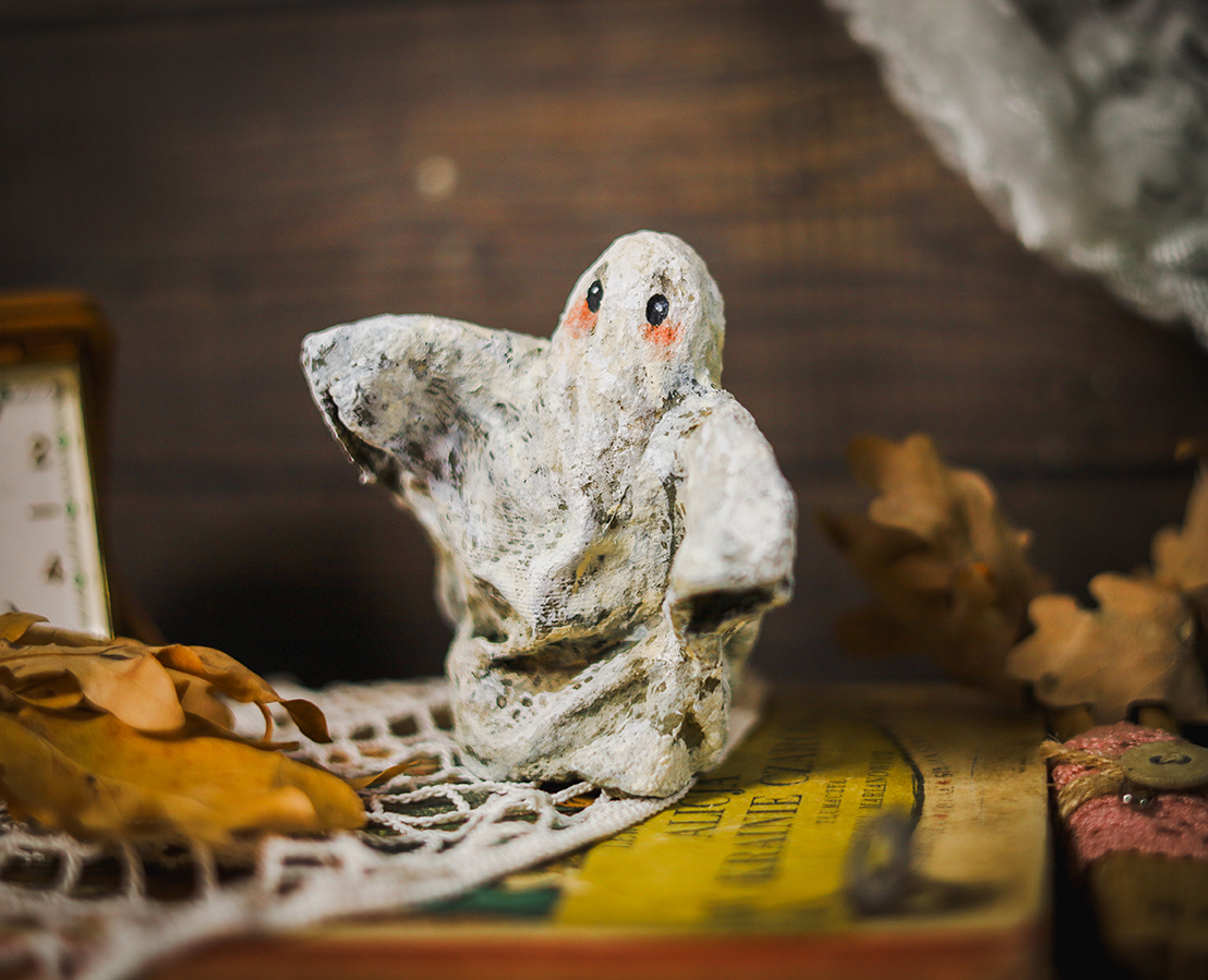 OOAK Spun Cotton Floating Ghost Ornament – Handmade Collectible Halloween Decoration – Vintage Style Figurine