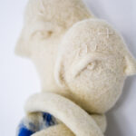 Handmade wall-hanging fiber art sculpture, created with wool, hollow fiber filling, and hand embroidery.