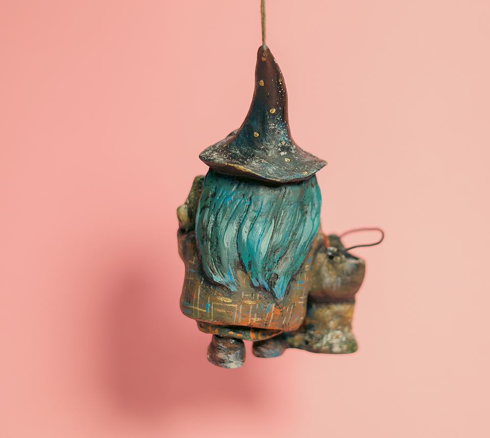 Handmade from paper mache and carefully hand-painted with an aged, timeworn finish, Bristle is a collectible hanging ornament made for shelves, hooks, seasonal displays, and home decor corners where small wonders belong.