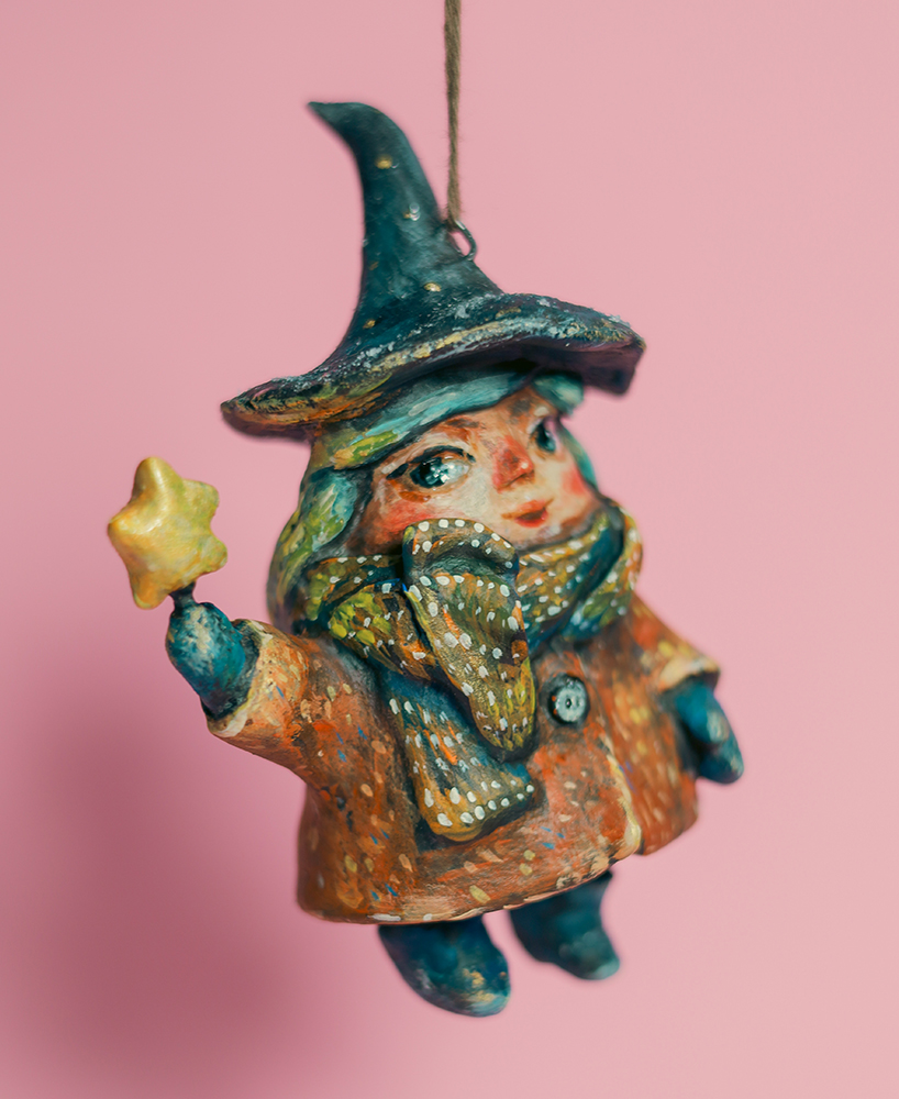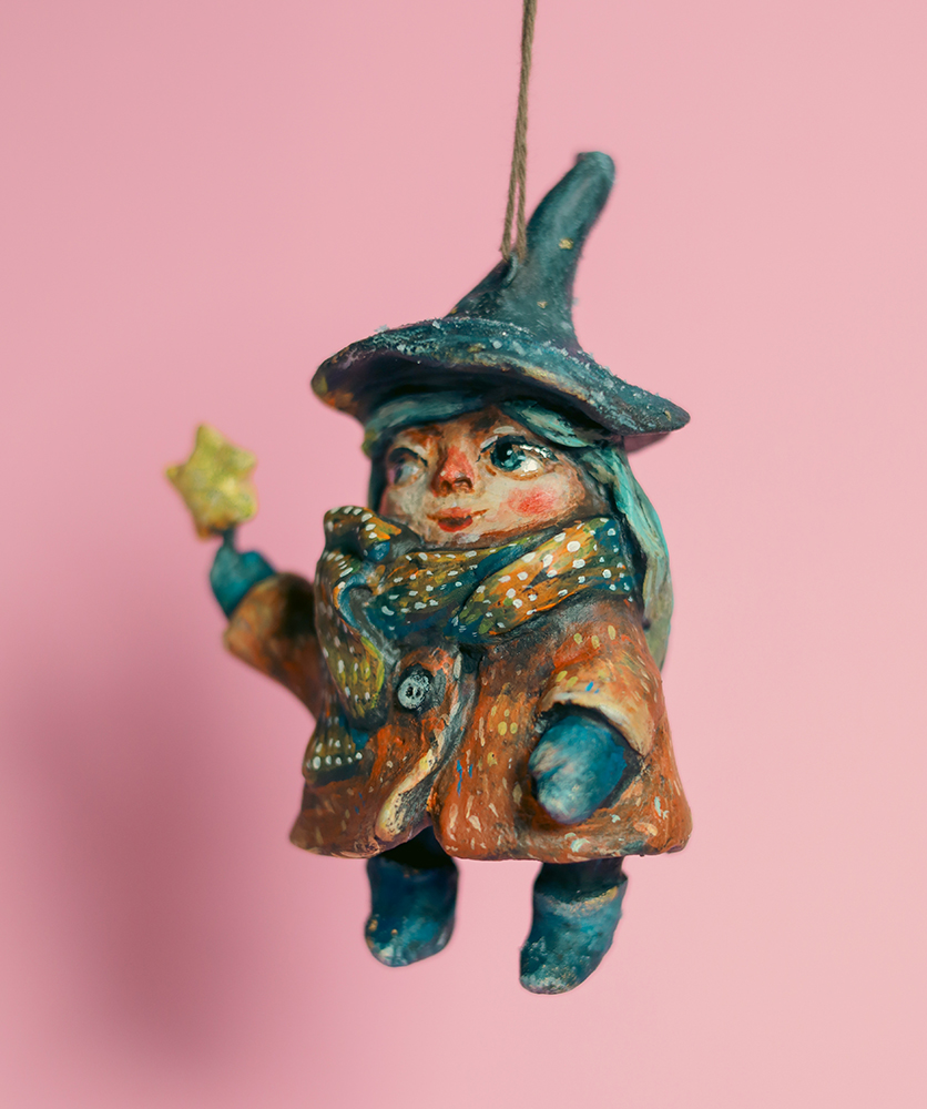 December 22, 2025LIORA Witch with a Star — Handmade Hanging Paper Mache Winter Ornament