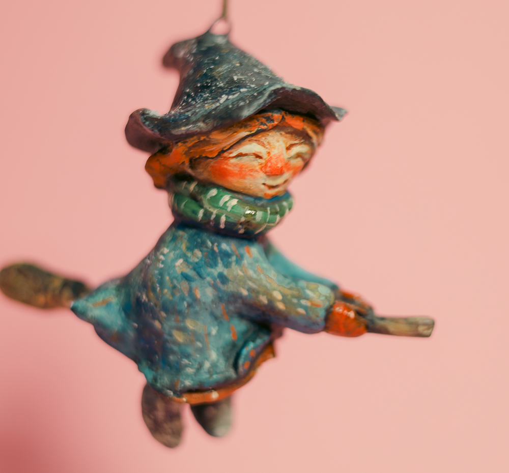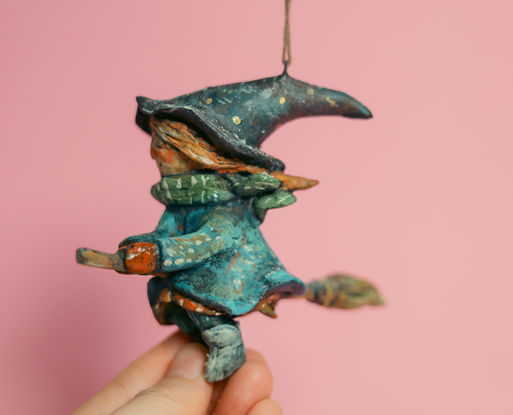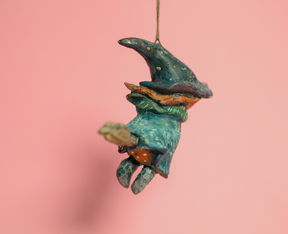 December 22, 2025MIRA — Hanging Witch Paper Mache Ornament with Broom
