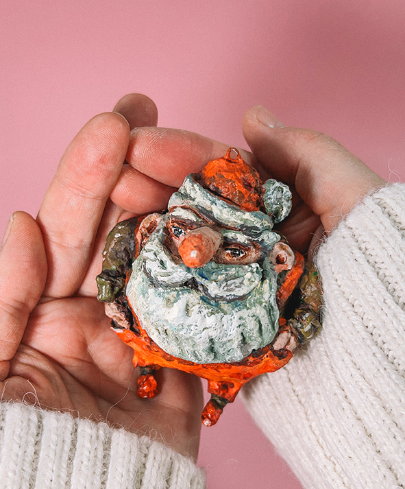 His cheerful red suit, expressive eyes, and textured beard bring nostalgic charm to any Christmas tree or seasonal display.