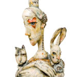 Queen of Nonsense with Rabbit and Cat – original mixed media sculpture